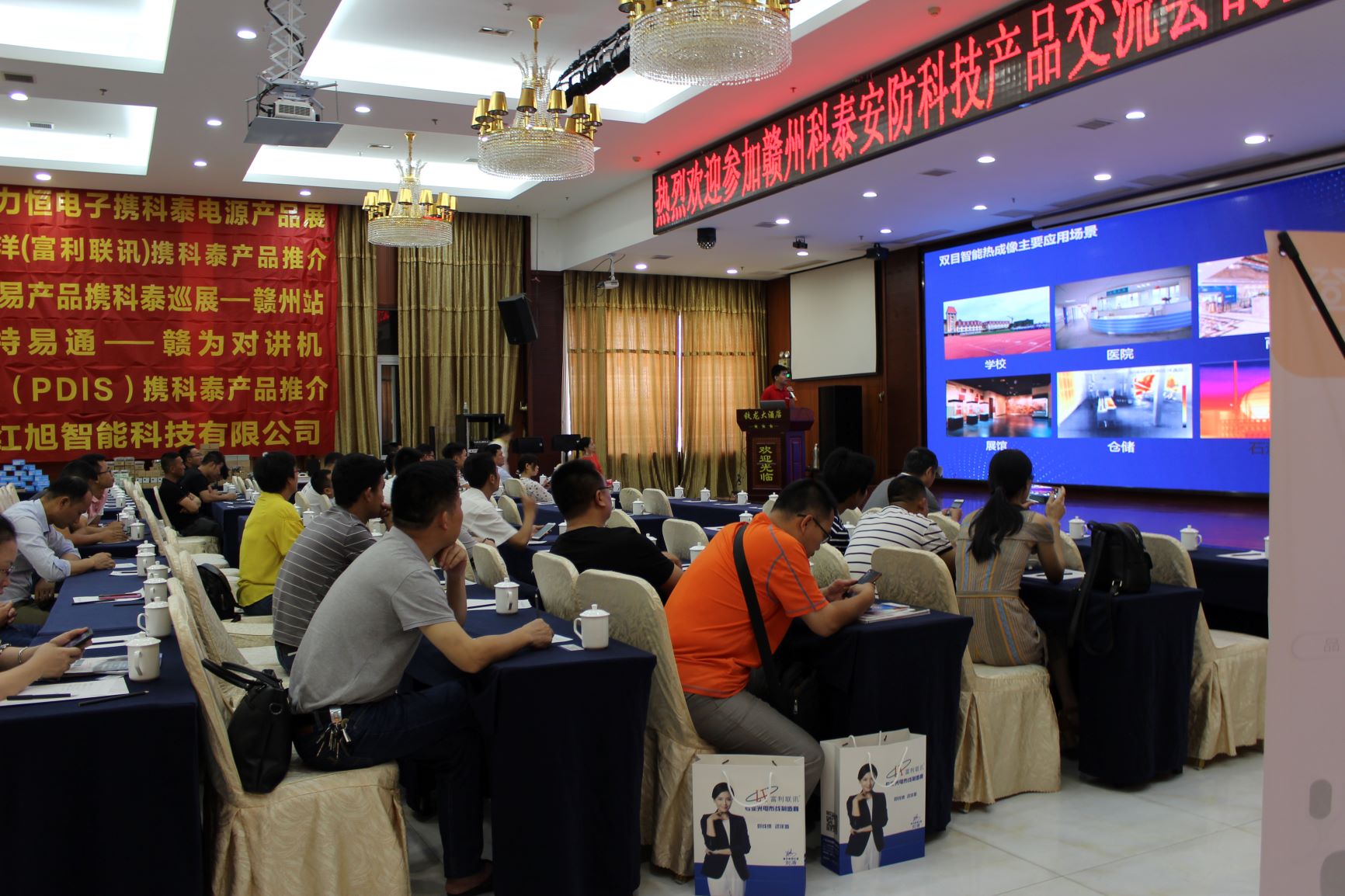 2019年6月5日下午,贛州科泰安防科技有限公司在贛州市鐵龍大酒店多功能廳隆重舉辦了“贛州科泰安防產品交流會”。此次會議聯合供應廠商浙江大華技術股份有限公司、廣東遠洋線纜科技、銳捷網絡科技股份有限公司、普迪仕科技有限以司等協助舉辦。會議到場100多名優秀工程商和經銷商代表歡聚一堂、暢談交流。