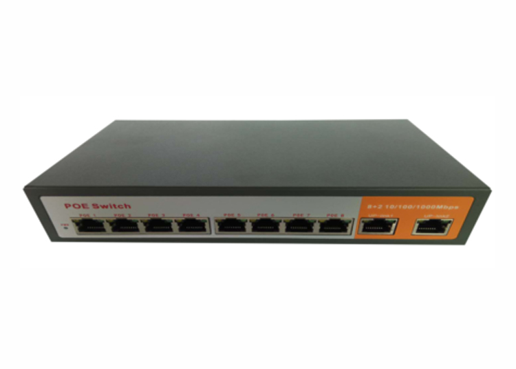 名稱:10口千兆國標智能POE交換機 產品型號:KHT108G 提供8個P0E供電端口 2個自適用1000Mbps 端口 產品尺寸:200*120*45mm 包裝尺寸:240*185*75mm 產品重量:0.7公斤 包裝后重:0.95公斤 供電參數:單口最大功率30W 整機最大功率:120W 輸出電壓:48V 線對1/2+ 3/6-雙兼容AT/AF標準 產品認證:CE ROHS